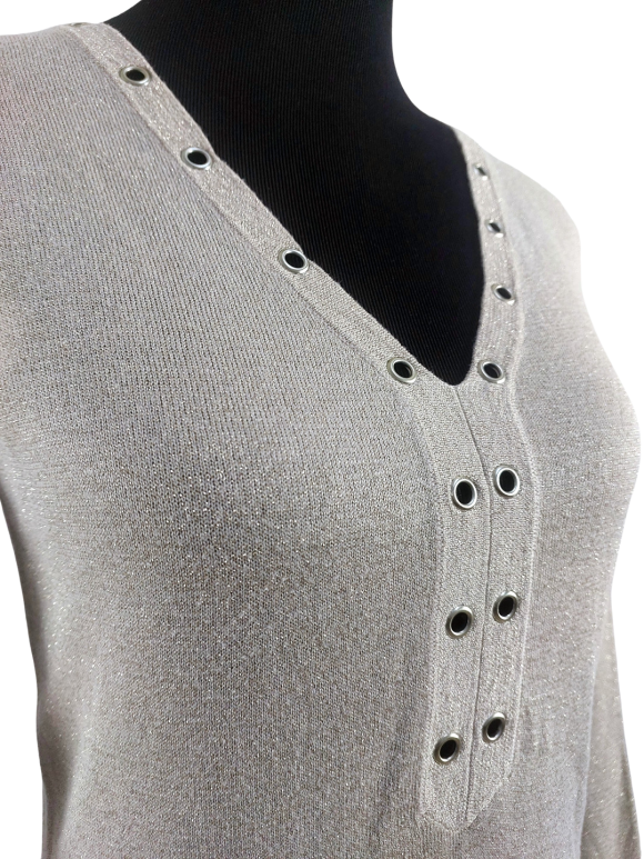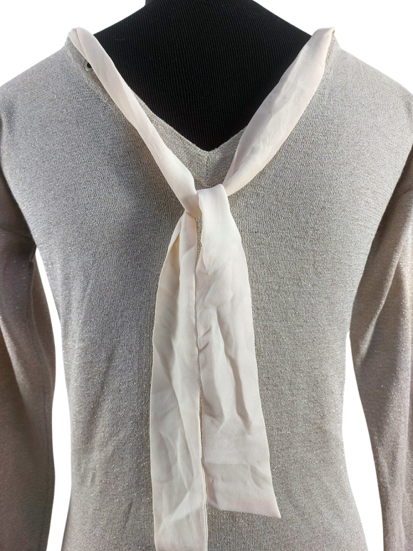 كنزة صوفية (Sweater) تلبس من فوق الرأس (Pullover) - خط عنق شكل ـ V ـ، بدون ياقة، كتف عادي، أكمام طويلة عادية (Plain) - عاجي, S