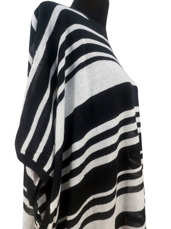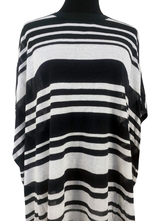 كنزة صوفية (Sweater) تلبس من فوق الرأس (Pullover) - خط عنق دائري، بدون ياقة، كتف عادي، أكمام قصيرة بشكل جناح الخفاش (Batwing) - أسود, مناسب لأكثر من قياس