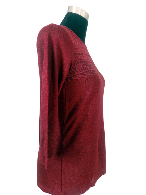 كنزة صوفية (Sweater) تلبس من فوق الرأس (Pullover) - خط عنق دائري، بدون ياقة، كتف عادي، أكمام طويلة عادية (Plain) - خمري, S