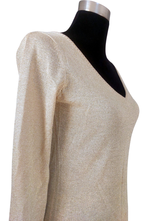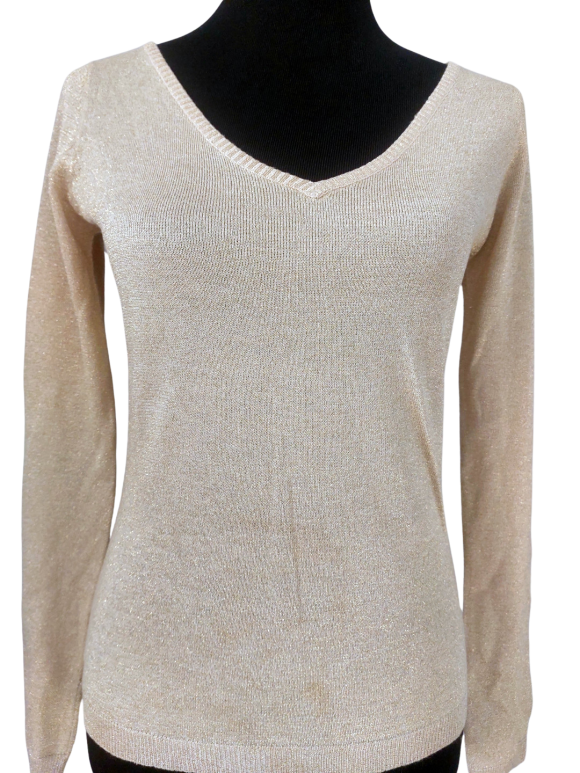 كنزة صوفية (Sweater) تلبس من فوق الرأس (Pullover) - خط عنق شكل ـ V ـ، بدون ياقة، كتف عادي، أكمام طويلة عادية (Plain) - بني فاتح, S