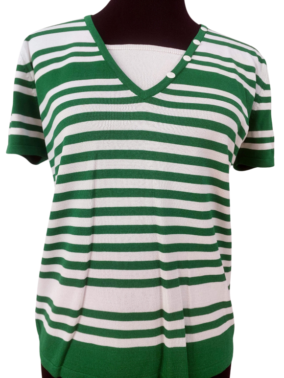 كنزة صوفية (Sweater) تلبس من فوق الرأس (Pullover) - خط عنق شكل ـ V ـ، بدون ياقة، كتف عادي، أكمام قصيرة عادية (Plain) - أخضر, مناسب لأكثر من قياس