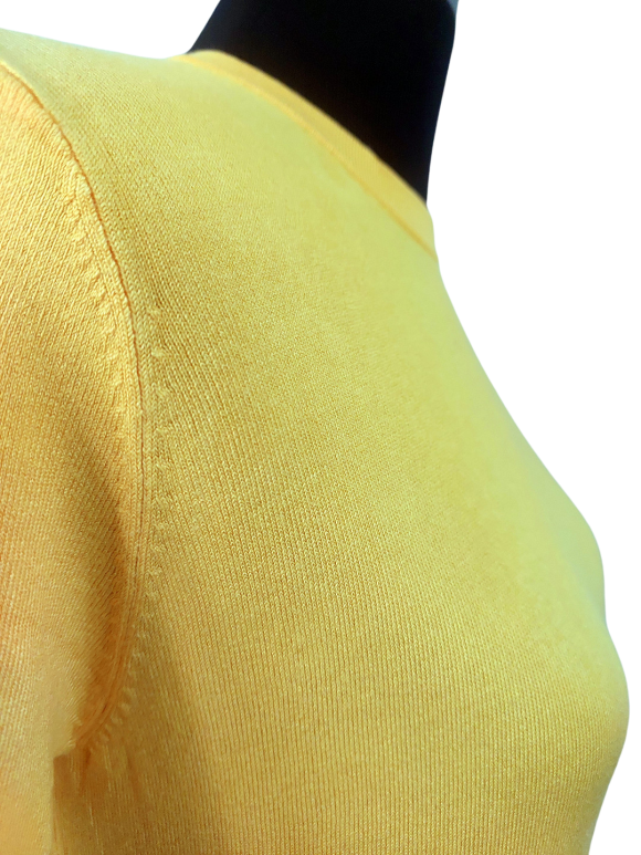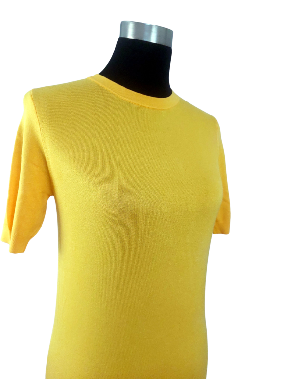 كنزة صوفية (Sweater) تلبس من فوق الرأس (Pullover) - خط عنق دائري، بدون ياقة، كتف عادي، أكمام قصيرة عادية (Plain) - أصفر, S