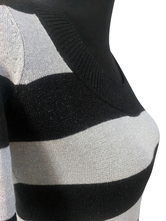 كنزة صوفية (Sweater) تلبس من فوق الرأس (Pullover) - خط عنق دائري، بدون ياقة، كتف عادي، أكمام طويلة عادية (Plain) - أسود, XS