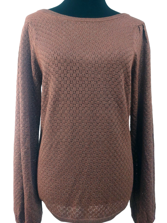 كنزة صوفية (Sweater) تلبس من فوق الرأس (Pullover) - خط عنق دائري، بدون ياقة، كتف عادي، أكمام طويلة عادية (Plain) - بني, M