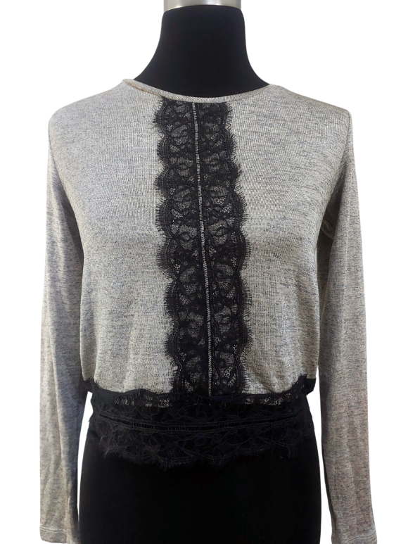 كنزة صوفية (Sweater) تلبس من فوق الرأس (Pullover) - خط عنق دائري، بدون ياقة، كتف عادي، أكمام طويلة عادية (Plain) - رمادي, M