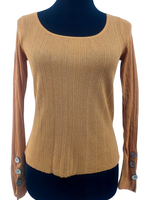 كنزة صوفية (Sweater) تلبس من فوق الرأس (Pullover) - خط عنق دائري، بدون ياقة، كتف عادي، أكمام طويلة عادية (Plain) - بني, M