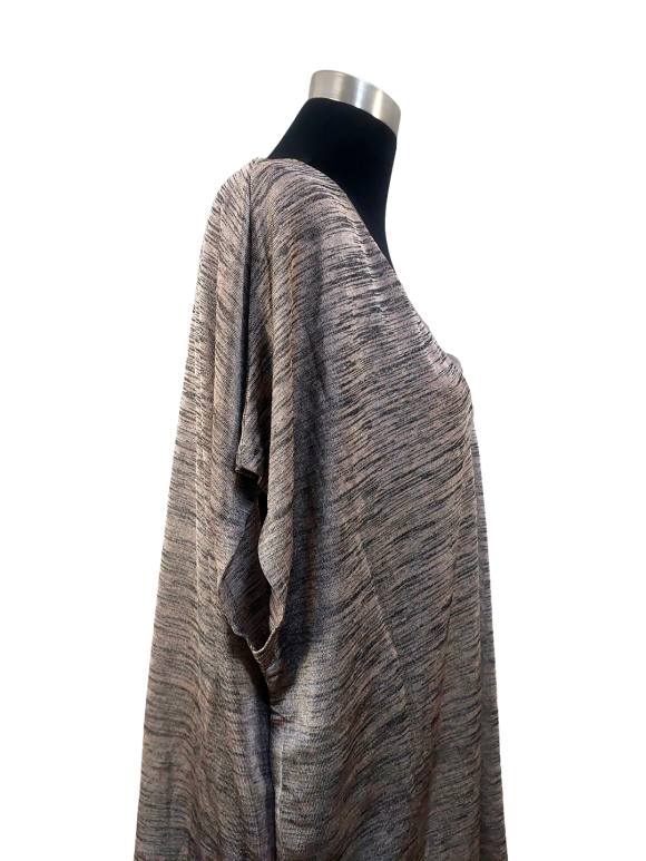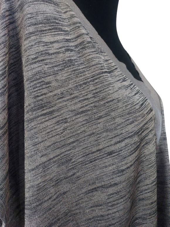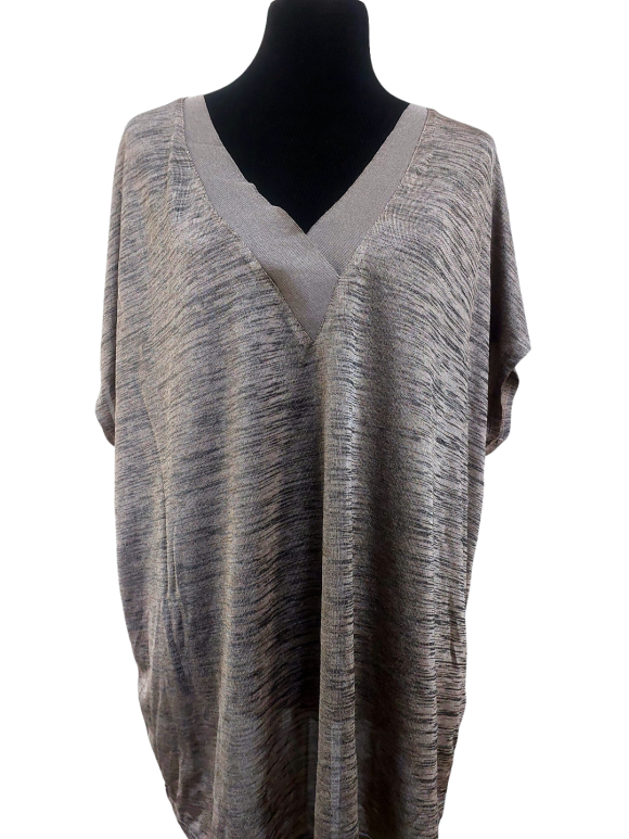 كنزة صوفية (Sweater) تلبس من فوق الرأس (Pullover) - خط عنق شكل ـ V ـ، بدون ياقة، كتف عادي، أكمام قصيرة بشكل جناح الخفاش (Batwing) - رمادي, XL