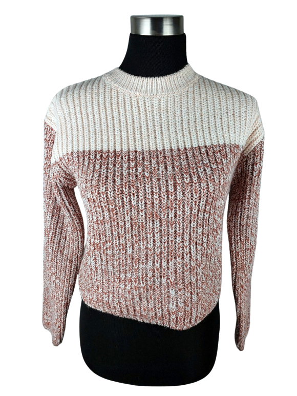 كنزة صوفية (Sweater) تلبس من فوق الرأس (Pullover) - خط عنق دائري بدون ياقة كتف عادي أكمام طويلة عادية (Plain) - زهري, M