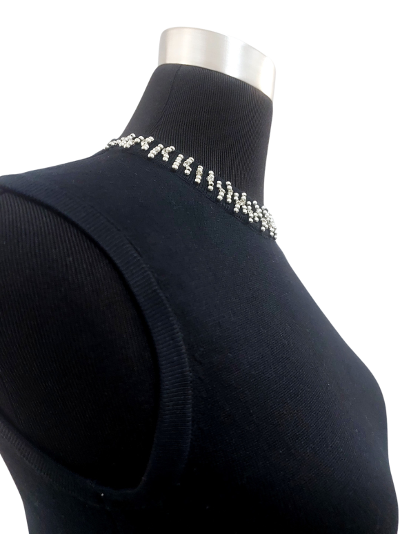 كنزة صوفية (Sweater) تلبس من فوق الرأس (Pullover) - خط عنق دائري، بدون ياقة، كتف عادي، بدون أكمام - أسود, مناسب لأكثر من قياس