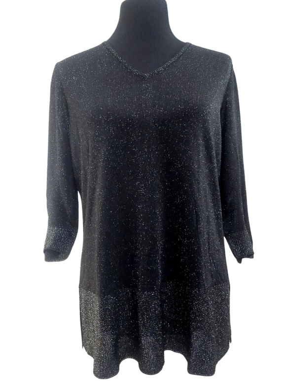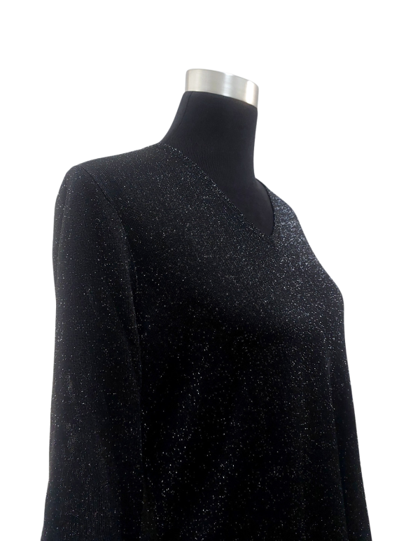 كنزة صوفية (Sweater) تلبس من فوق الرأس (Pullover) - خط عنق شكل ـ V ـ، بدون ياقة، كتف عادي، أكمام ثلاثة أرباع عادية (Plain) - أسود, مناسب لأكثر من قياس