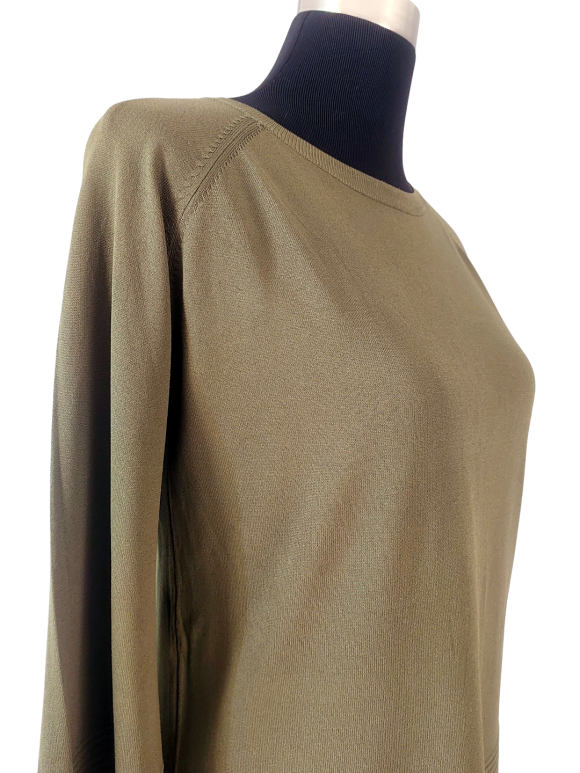 كنزة صوفية (Sweater) تلبس من فوق الرأس (Pullover) - خط عنق دائري، بدون ياقة، كتف عادي، أكمام طويلة بشكل جرس (Bell) - أخضر, مناسب لأكثر من قياس