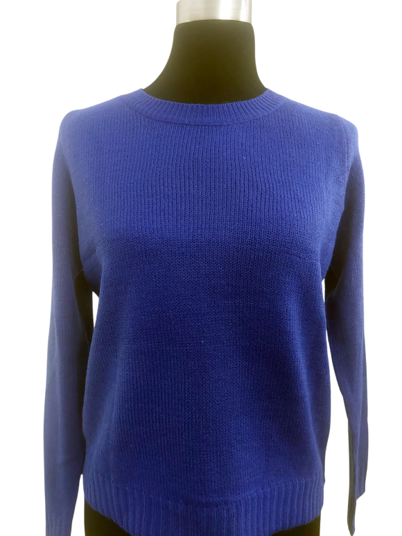 كنزة صوفية (Sweater) تلبس من فوق الرأس (Pullover) - خط عنق دائري، بدون ياقة، كتف عادي، أكمام طويلة عادية (Plain) - أزرق, مناسب لأكثر من قياس