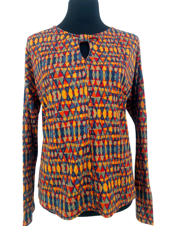 بلوزة - خط عنق دائري، بدون ياقة، كتف عادي، أكمام طويلة عادية (Plain) - بني, L