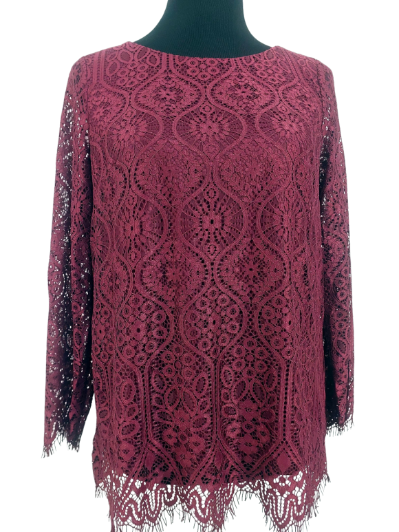 بلوزة - خط عنق دائري، بدون ياقة، كتف عادي، أكمام طويلة عادية (Plain) - خمري, M