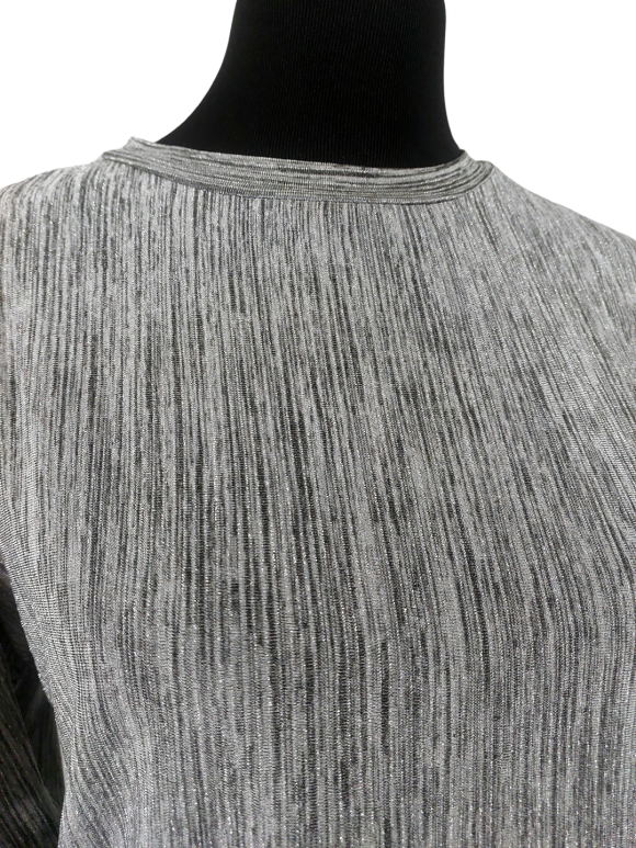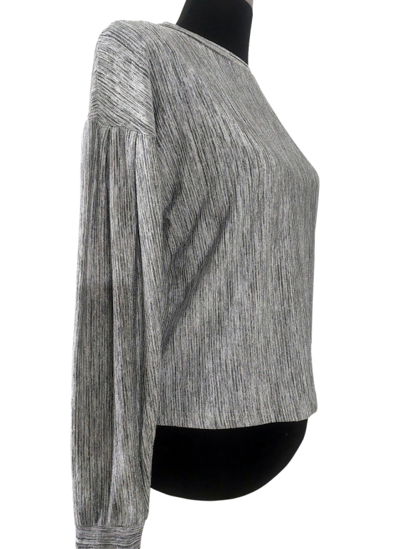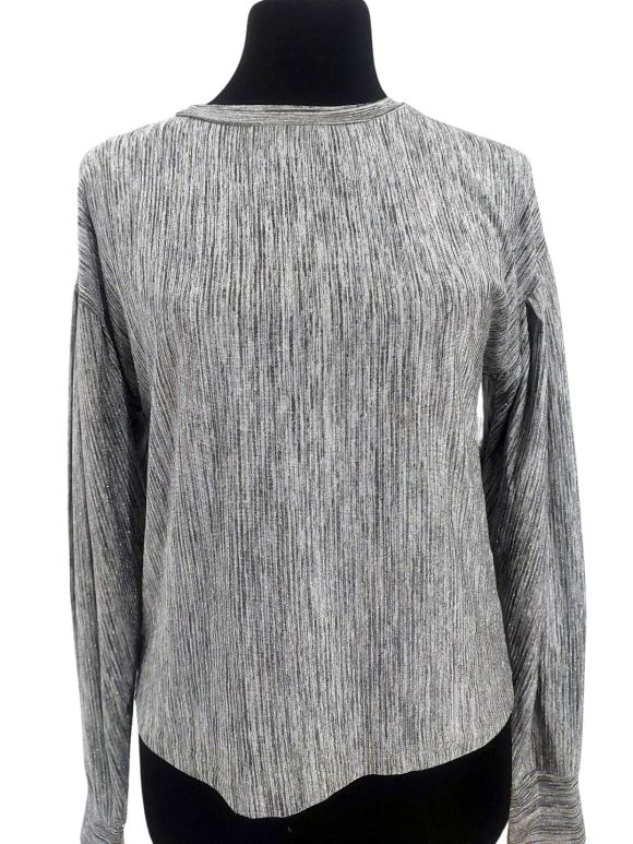 بلوزة - خط عنق دائري، بدون ياقة، كتف عادي، أكمام طويلة بشكل جناح الخفاش (Batwing) - رمادي, S