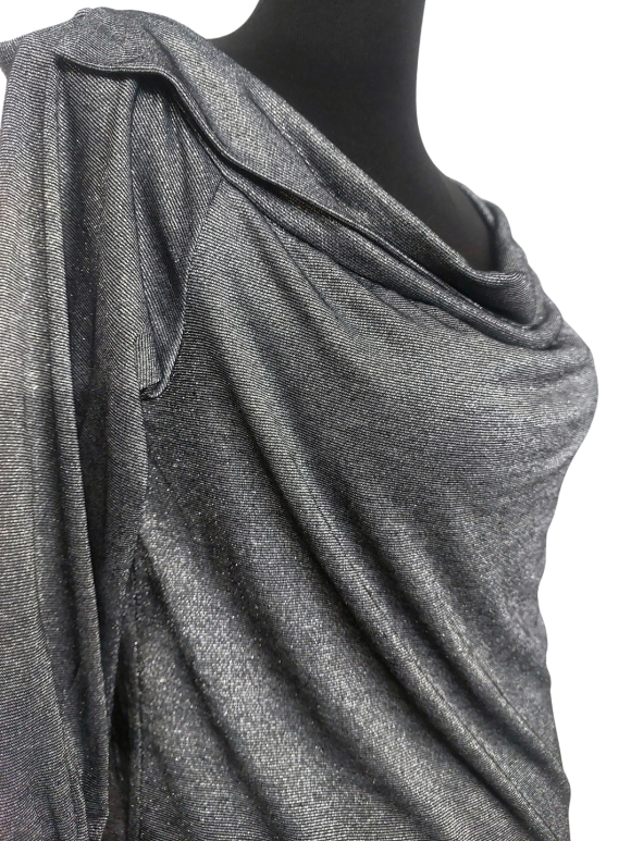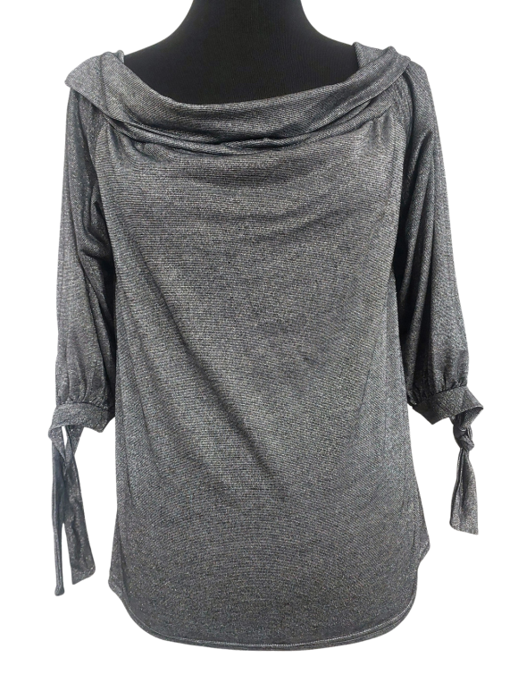 بلوزة - خط عنق متسدّل (Draped)، بدون ياقة، كتف عادي، أكمام طويلة عادية (Plain) - رمادي, M