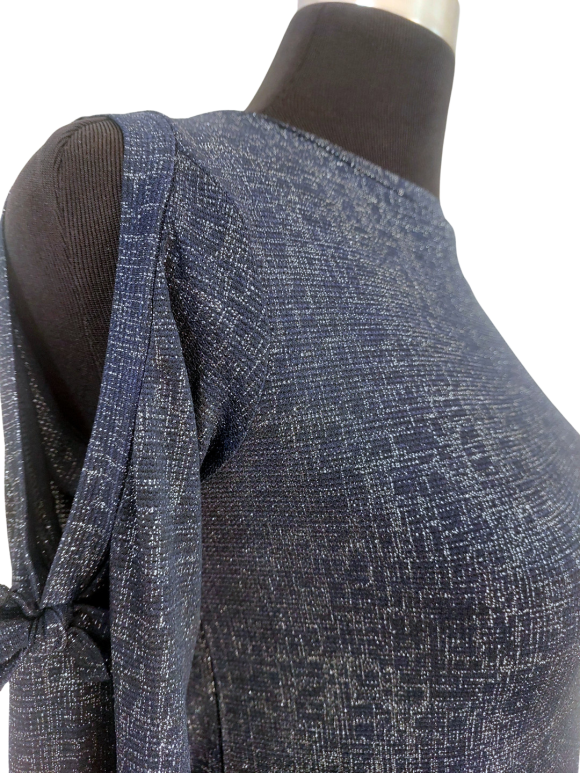 بلوزة - خط عنق دائري، بدون ياقة، كتف عادي، أكمام ثلاثة أرباع عادية (Plain) - كحلي, XS
