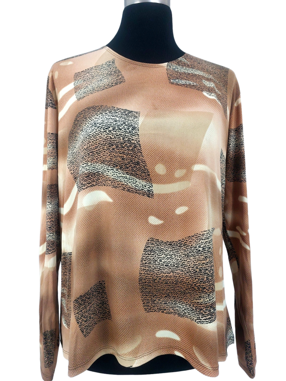 بلوزة - خط عنق دائري، بدون ياقة، كتف عادي، أكمام طويلة عادية (Plain) - بني فاتح, مناسب لأكثر من قياس