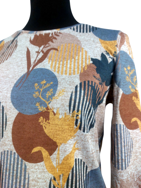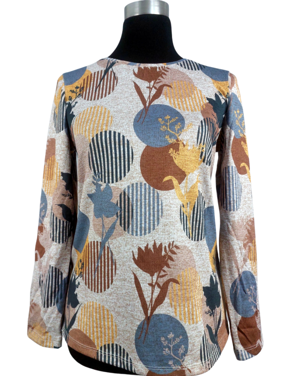 تيشيرت فضفاض (Relaxed) - خط عنق دائري، بدون ياقة، كتف عادي، أكمام طويلة عادية (Plain) - بني فاتح, M