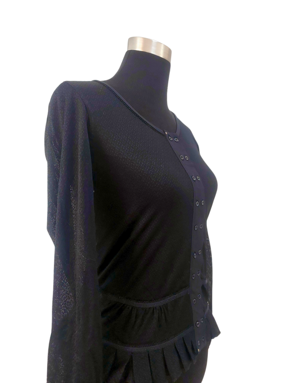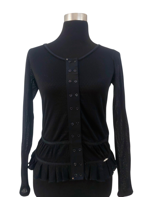 بلوزة - خط عنق دائري، بدون ياقة، كتف عادي، أكمام طويلة عادية (Plain) - أسود, XS