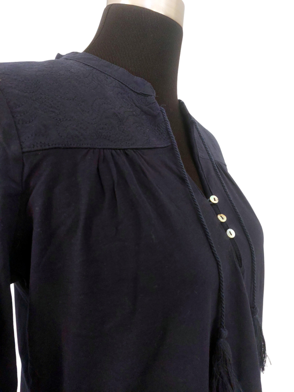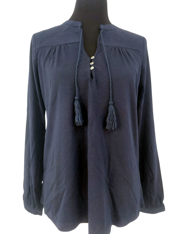 بلوزة - خط عنق شكل ـ V ـ، بدون ياقة، كتف عادي، أكمام طويلة عادية (Plain) - كحلي, مناسب لأكثر من قياس
