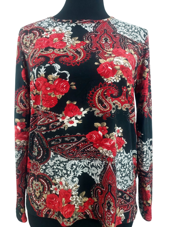تيشيرت فضفاض (Relaxed) - خط عنق دائري، بدون ياقة، كتف عادي، أكمام طويلة عادية (Plain) - أحمر, M