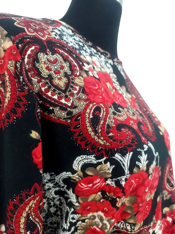 تيشيرت فضفاض (Relaxed) - خط عنق دائري، بدون ياقة، كتف عادي، أكمام طويلة عادية (Plain) - أحمر, M