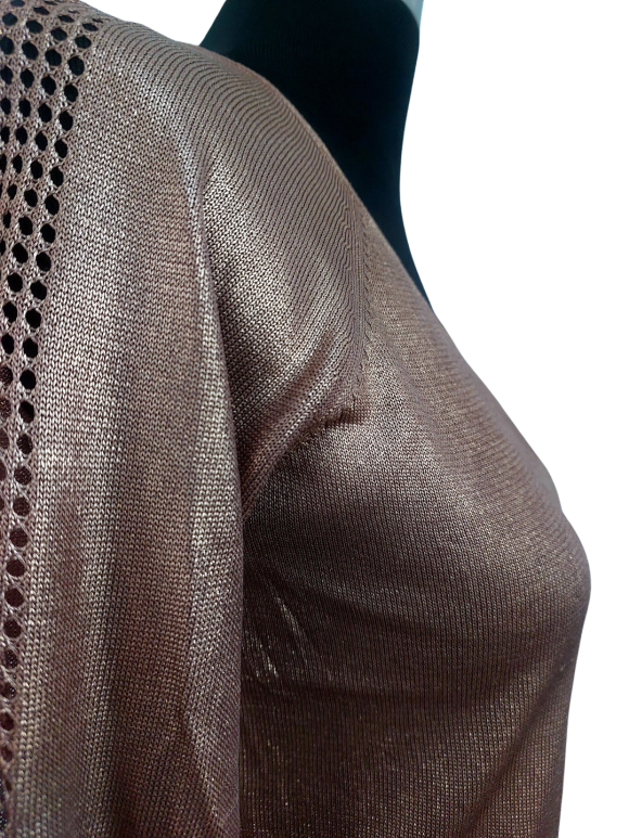 كنزة صوفية (Sweater) تلبس من فوق الرأس (Pullover) - خط عنق شكل ـ V ـ، بدون ياقة، كتف عادي، أكمام طويلة عادية (Plain) - بني, S