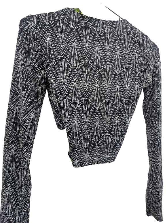 بلوزة - خط عنق شكل ـ V ـ سوربليس (Surplice)، بدون ياقة، كتف عادي، أكمام طويلة عادية (Plain) - أسود, مناسب لأكثر من قياس