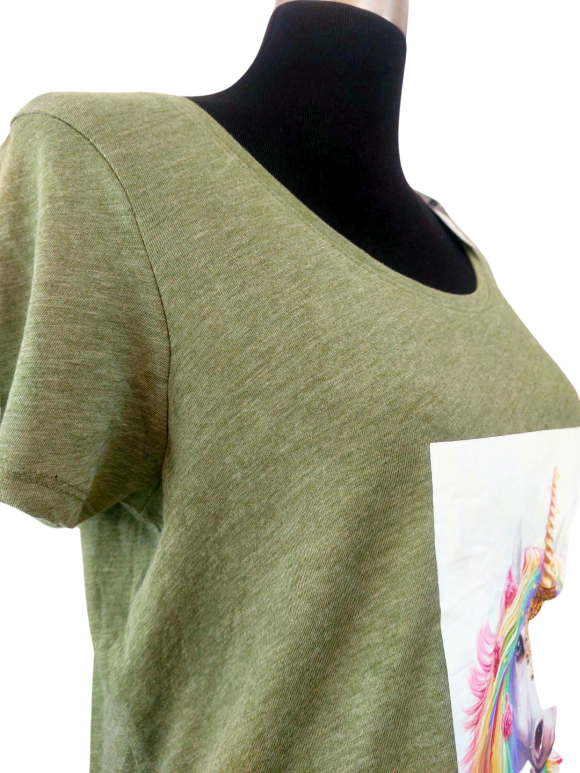 تيشيرت مريح (Relaxed) - خط عنق دائري، بدون ياقة، كتف عادي، أكمام قصيرة عادية (Plain) - أخضر, L
