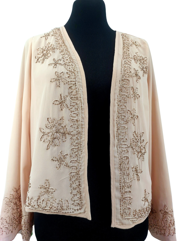 كارديجان - خط عنق شكل ـ V ـ، بدون ياقة، كتف عادي، أكمام طويلة بشكل جرس (Bell) - عاجي, S/M