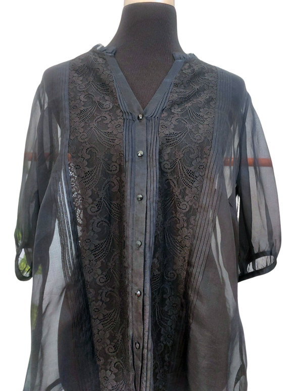 قميص - خط عنق شكل ـ V ـ، بدون ياقة، كتف عادي، أكمام قصيرة عادية (Plain) - أسود, XL