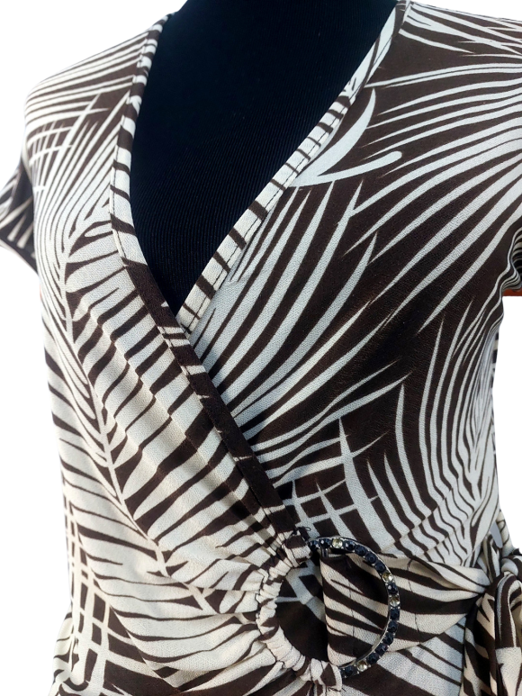بلوزة - خط عنق شكل ـ V ـ سوربليس (Surplice)، بدون ياقة، كتف عادي، أكمام قصيرة عادية (Plain) - بني فاتح, S/M