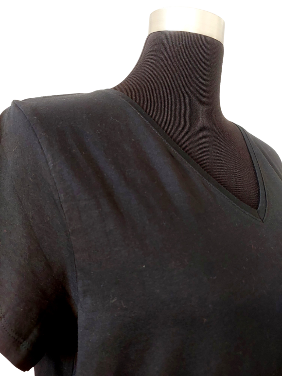 تيشيرت مريح (Relaxed) - خط عنق شكل ـ V ـ، بدون ياقة، كتف عادي، أكمام قصيرة عادية (Plain) - أسود, L