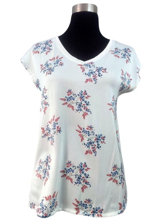 تيشيرت مريح (Relaxed) - خط عنق شكل ـ V ـ، بدون ياقة، كتف عادي، أكمام قصيرة عادية (Plain) - أبيض, S