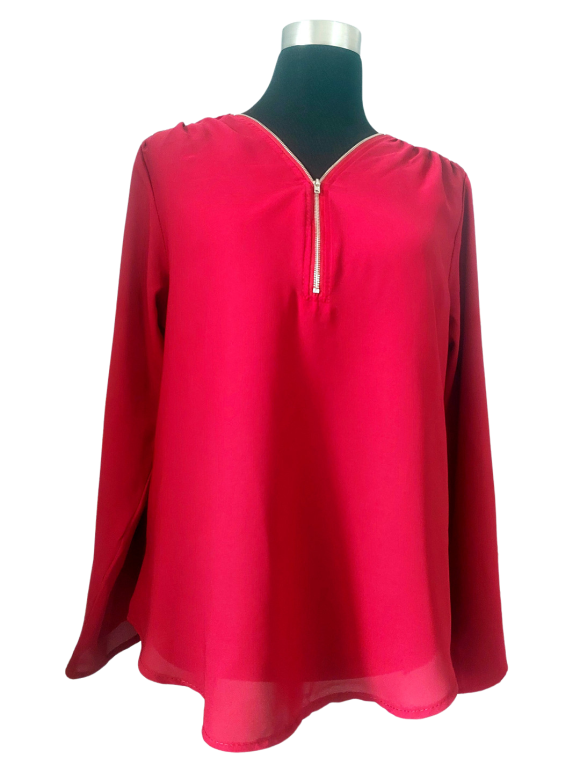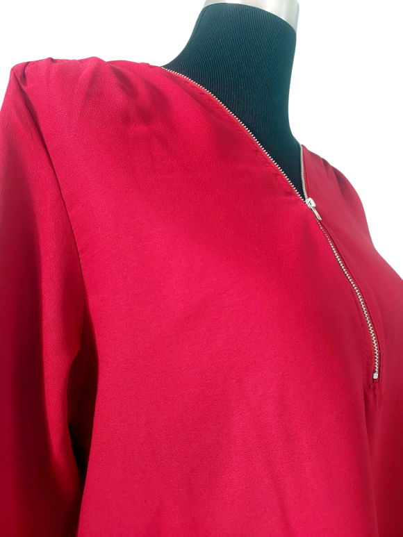 Blouse - V-Shape neckline، No Collar، Regular shoulder، Long sleeve Plain - خمري, M