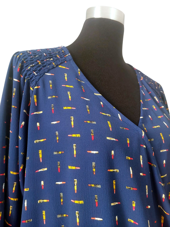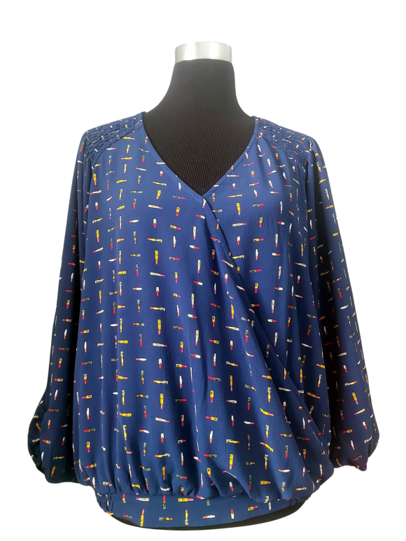 بلوزة - خط عنق شكل ـ V ـ، بدون ياقة، كتف عادي، أكمام طويلة عادية (Plain) - كحلي, M/L
