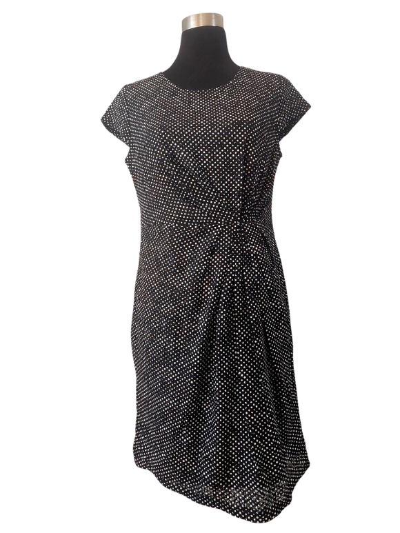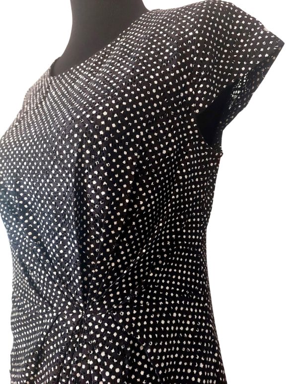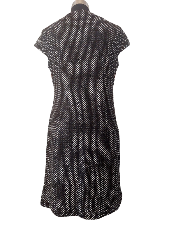 فستان بلوزون (Blouson) - خط عنق دائري، بدون ياقة، كتف عادي، أكمام قصيرة على شكل كاب (Cap) - أسود, M