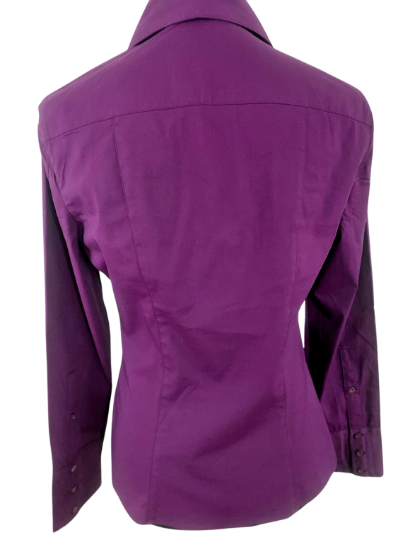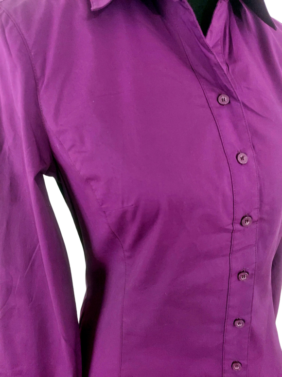 قميص - خط عنق شكل ـ V ـ، ياقة كلاسيكية، كتف عادي، أكمام طويلة عادية (Plain) - فوشي (زهري غامق), S
