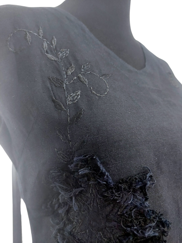 بلوزة - خط عنق شكل ـ V ـ، بدون ياقة، كتف عادي، بدون أكمام - أسود, S
