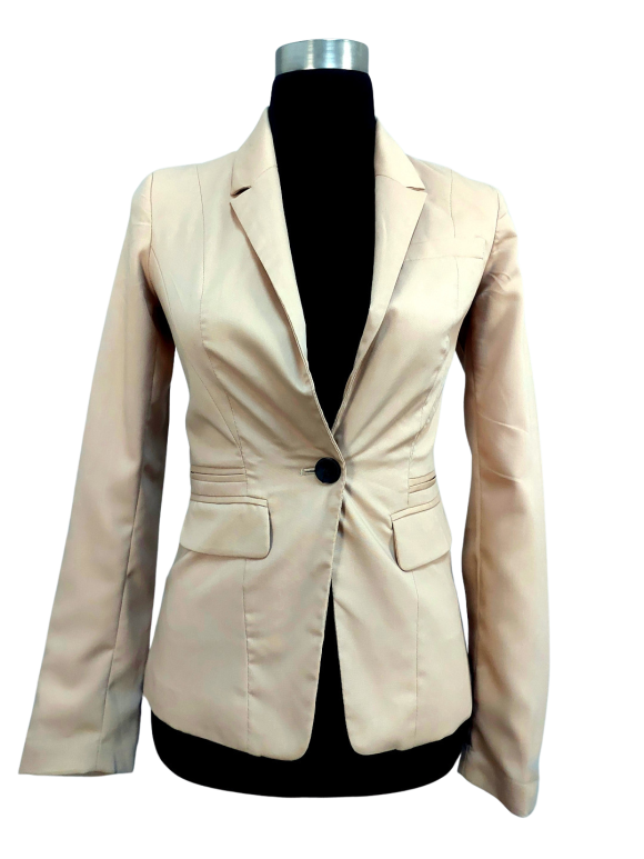 جاكيت بليزر - خط عنق شكل ـ V ـ، ياقة ذات شق (Notched)، كتف عادي، أكمام طويلة عادية (Plain) - بني فاتح, S