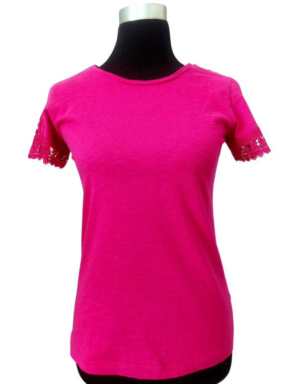 تيشيرت مريح (Relaxed) - خط عنق دائري، بدون ياقة، كتف عادي، أكمام قصيرة عادية (Plain) - زهري, XS