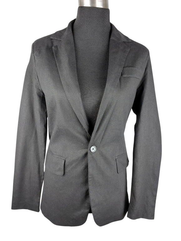 جاكيت بليزر - خط عنق شكل ـ V ـ، ياقة ذات شق (Notched)، كتف عادي، أكمام طويلة عادية (Plain) - أسود, M
