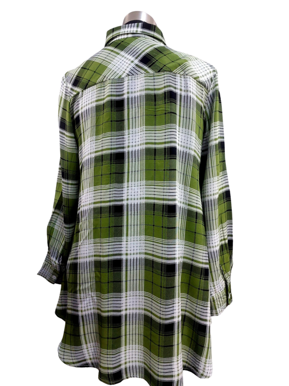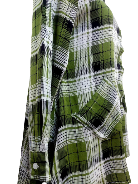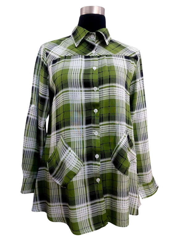 قميص - خط عنق شكل ـ V ـ، ياقة كلاسيكية، كتف عادي، أكمام طويلة عادية (Plain) - أخضر, M