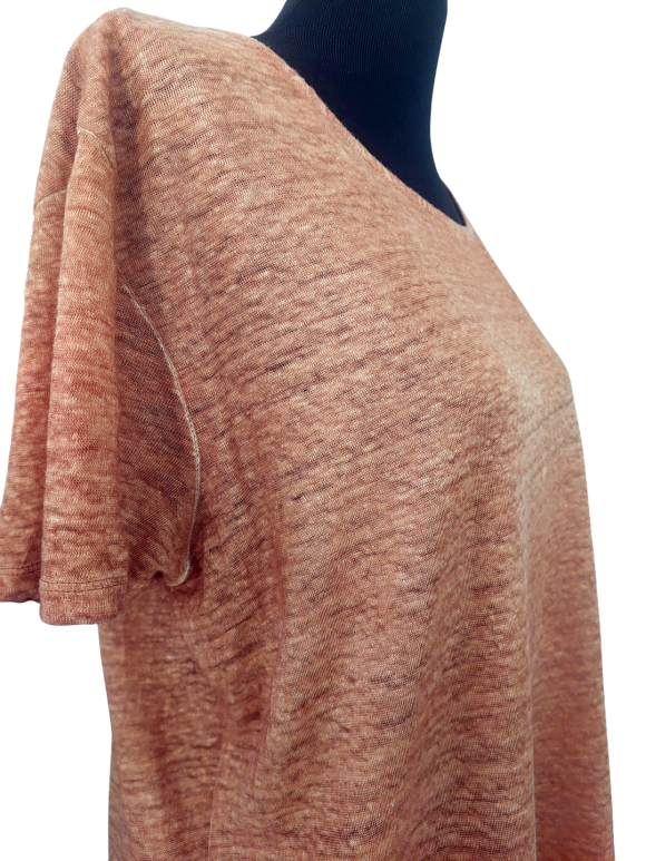 بلوزة - خط عنق دائري، بدون ياقة، كتف عادي، أكمام قصيرة عادية (Plain) - بني فاتح, XL