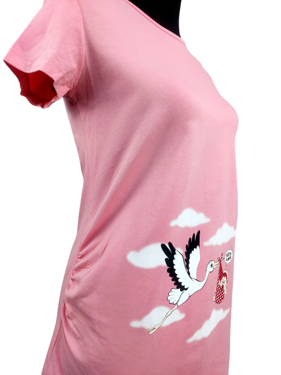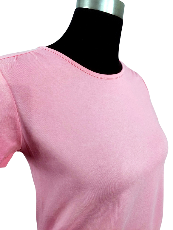 تونيك (Tunic) - خط عنق دائري، بدون ياقة، كتف عادي، أكمام قصيرة على شكل كاب (Cap) - زهري, S/M