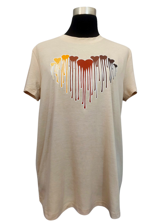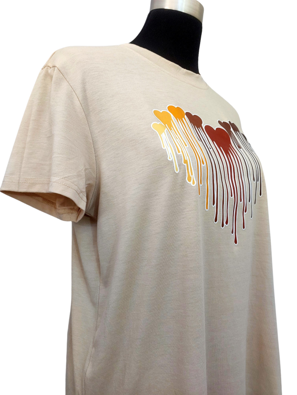 تيشيرت مريح (Relaxed) - خط عنق دائري، بدون ياقة، كتف عادي، أكمام قصيرة عادية (Plain) - بني فاتح, L