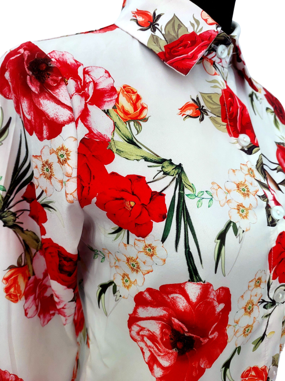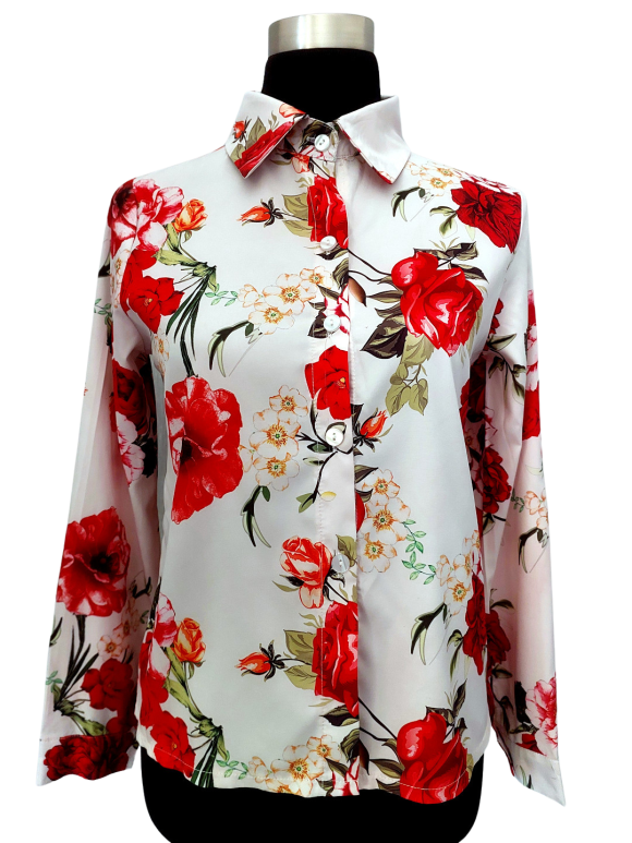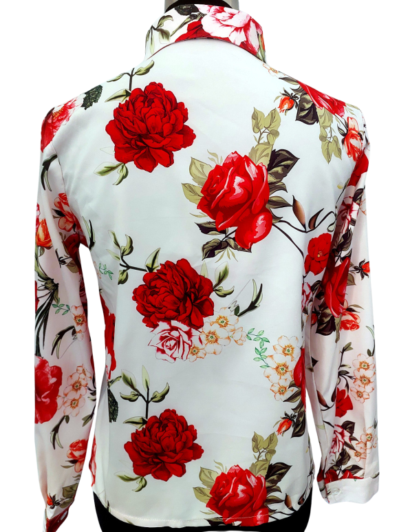 قميص - خط عنق شكل ـ V ـ، ياقة كلاسيكية، كتف عادي، أكمام طويلة عادية (Plain) - زهري, S