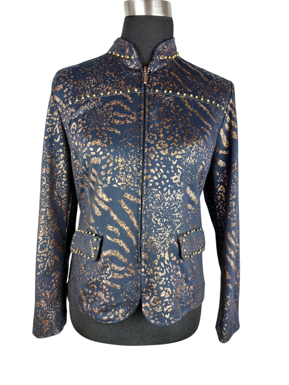 جاكيت بليزر - خط عنق دائري ياقة باند (Band) كتف عادي أكمام طويلة عادية (Plain) - أسود, L