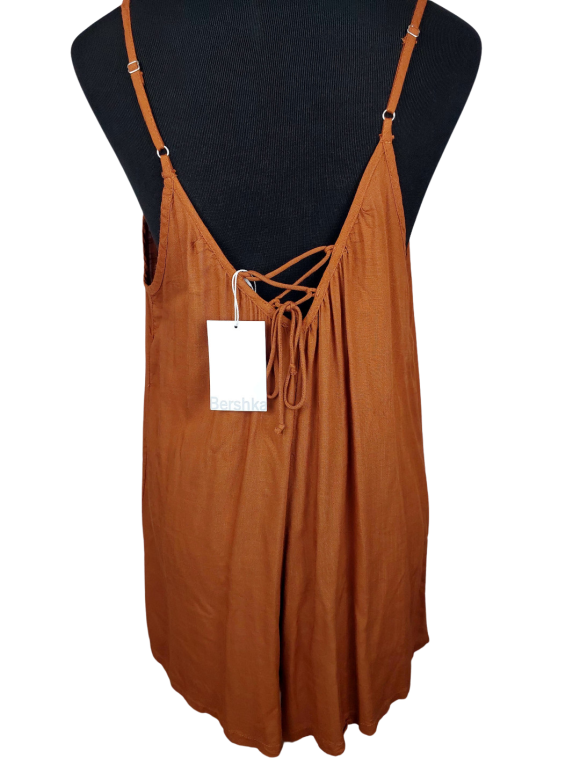 رومبر (Romper) - خط عنق على شكل قلب (Sweetheart) بدون ياقة كتف بحمالة رفيعة جدا (Spaghetti) بدون أكمام - بني, M